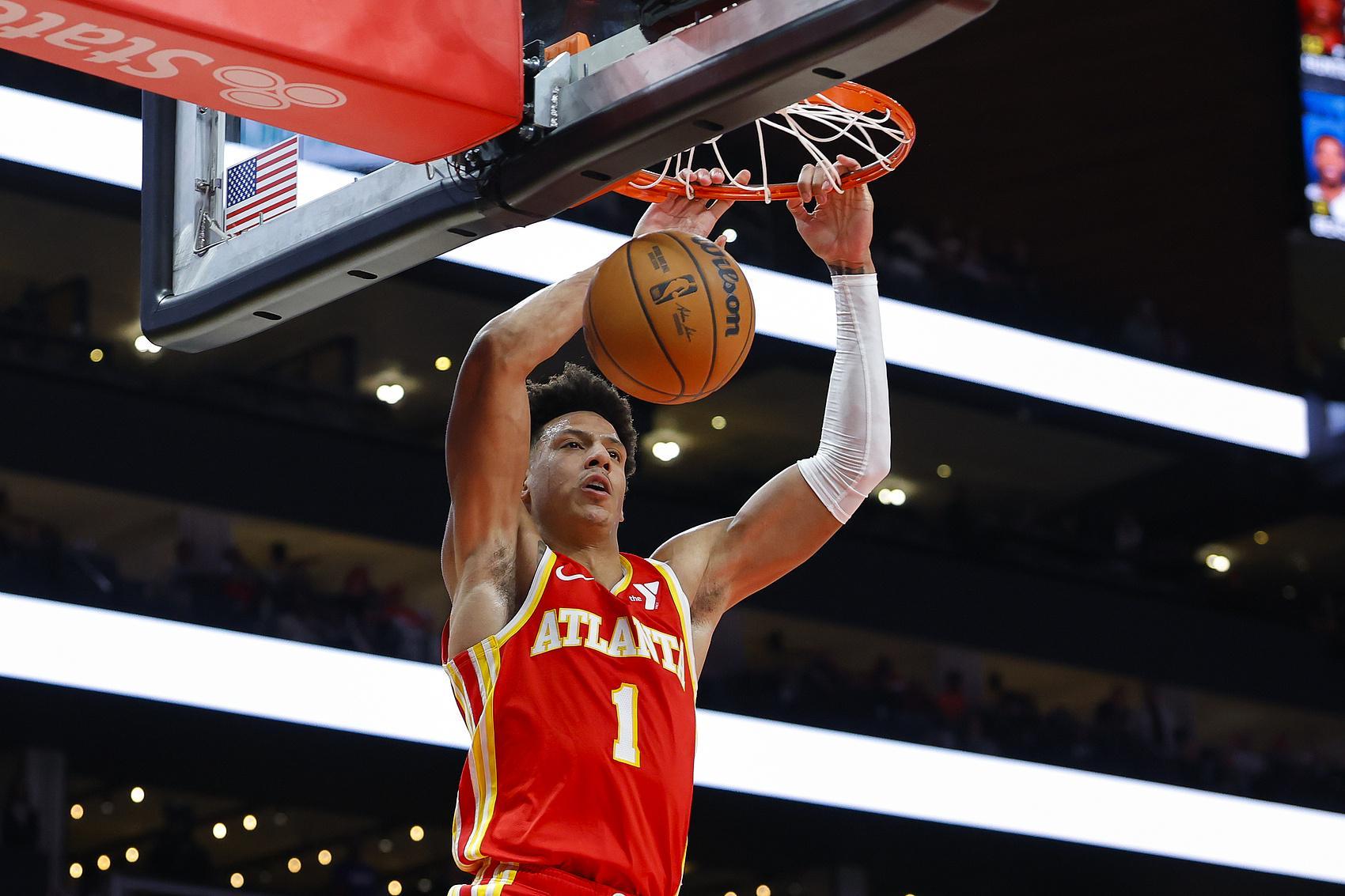 上赛季,杰伦-约翰逊受肩部伤势影响仅出战36场比赛,场均35.7分钟得到18.9分10篮板5助攻1.6抢断1盖帽,命中率50.0%、三分命中率31.2%,罚球命中率74.6%。